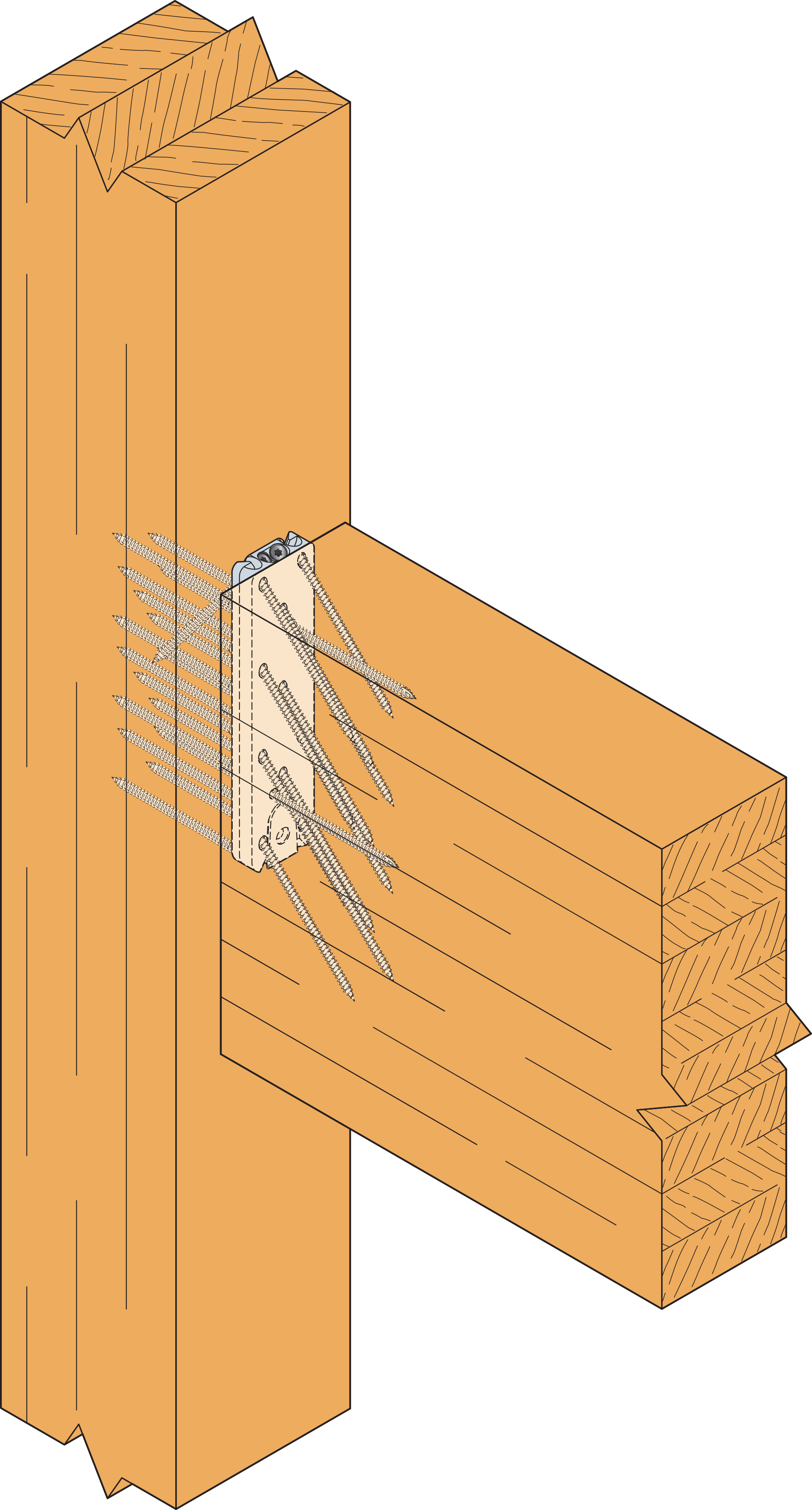 På primärbalk, TTUFS Ø5mm enligt ETA-21/0670 (för balk <80mm) och CSFT Ø6mm skruvar.