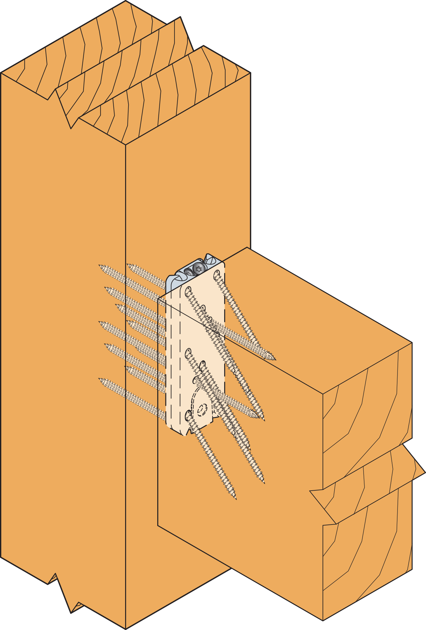The top screws going from the joist par to the header / post must be installed to block the uplift.