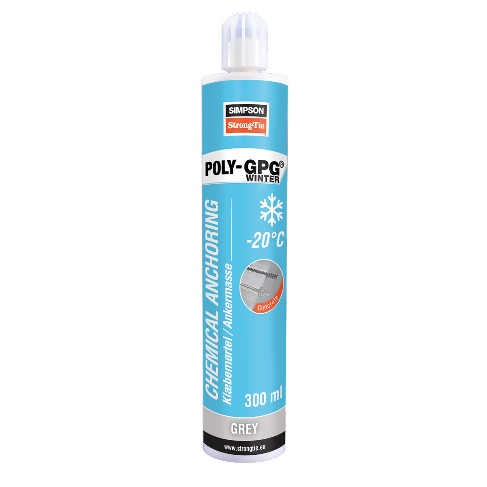 Ankarmassa för infästning i osprucken betong. För montage i låga temperaturer ner till -20˚C. POLY-GPG Winter är fri från styren och epoxy.