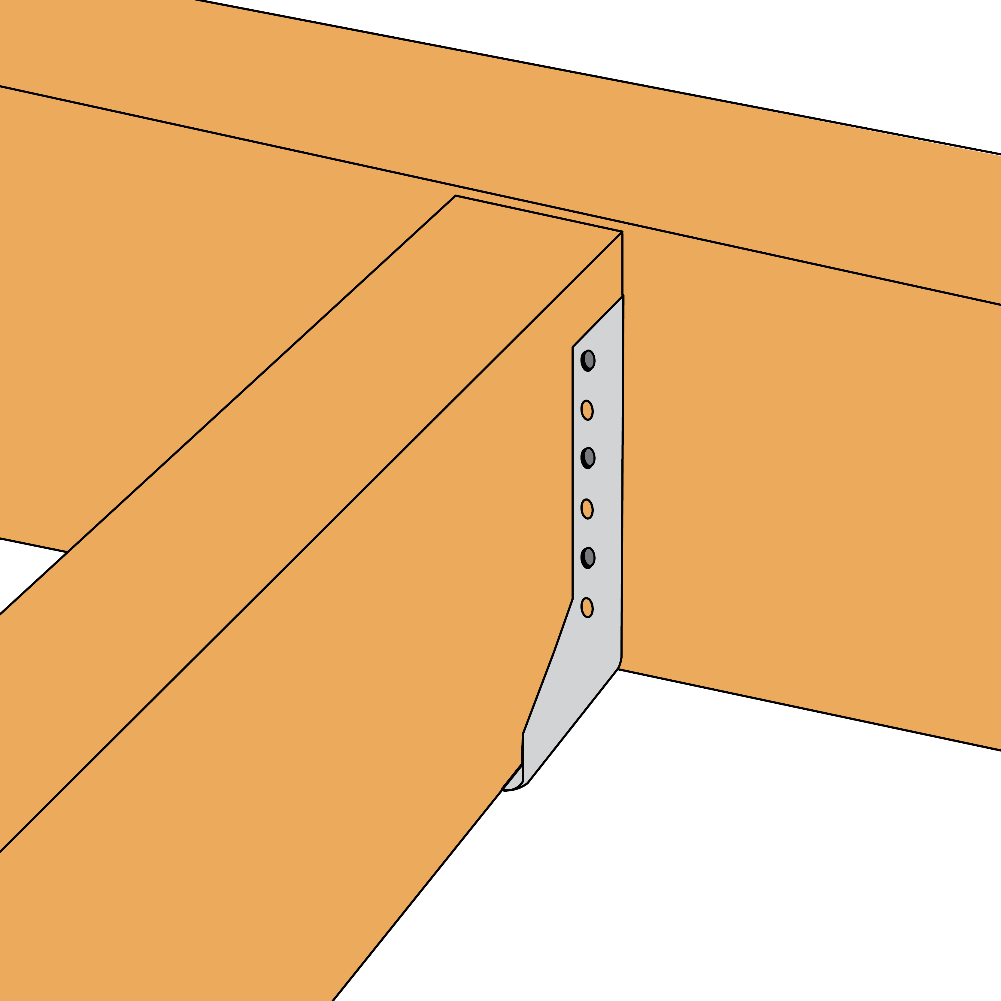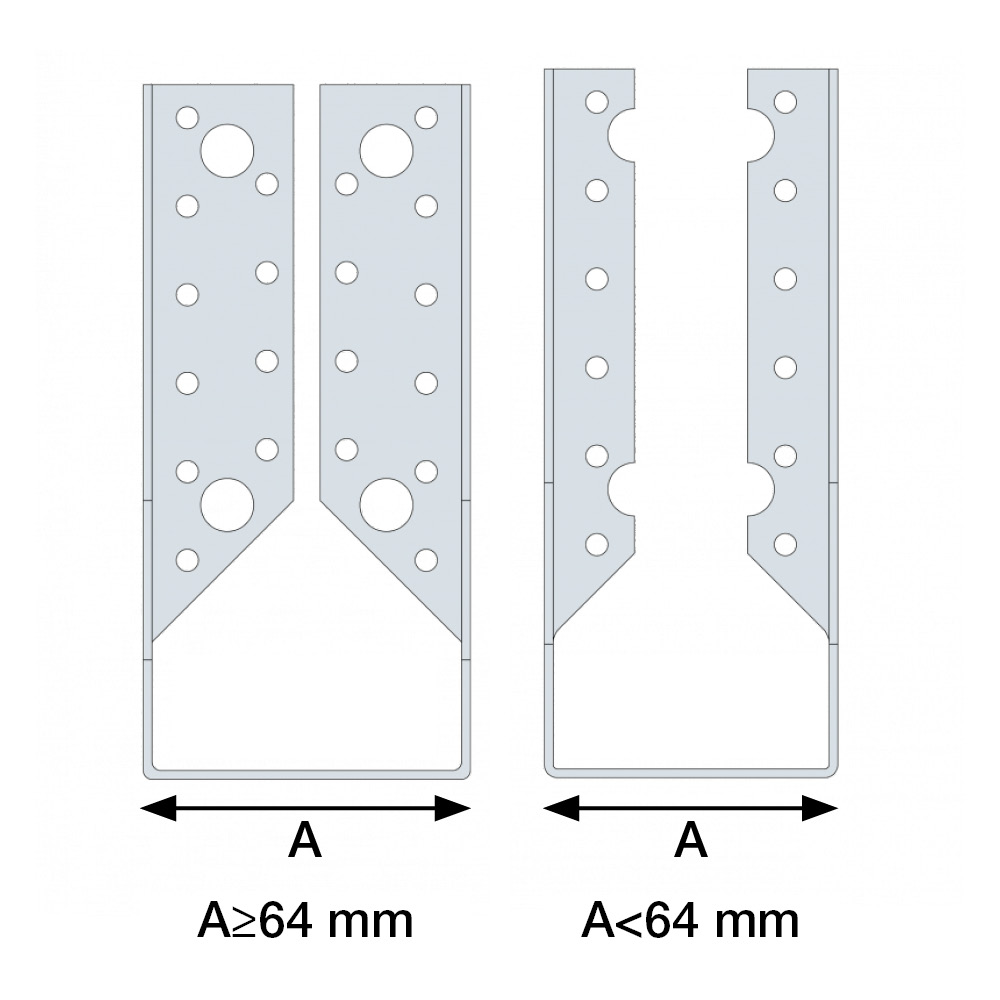 Balksko BSIN med inåtvända flikar används för montage av träbalkar i samma plan, de inåtvända flikarna döljs bakom träbalken efter montage.