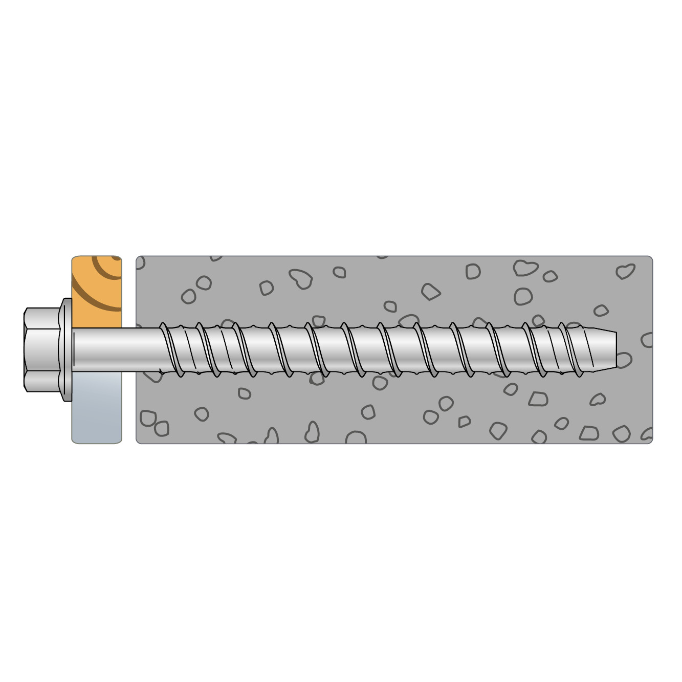 Finns även med försänkt huvud (Betongskruv Försänkt R-LX-CS-ZF).