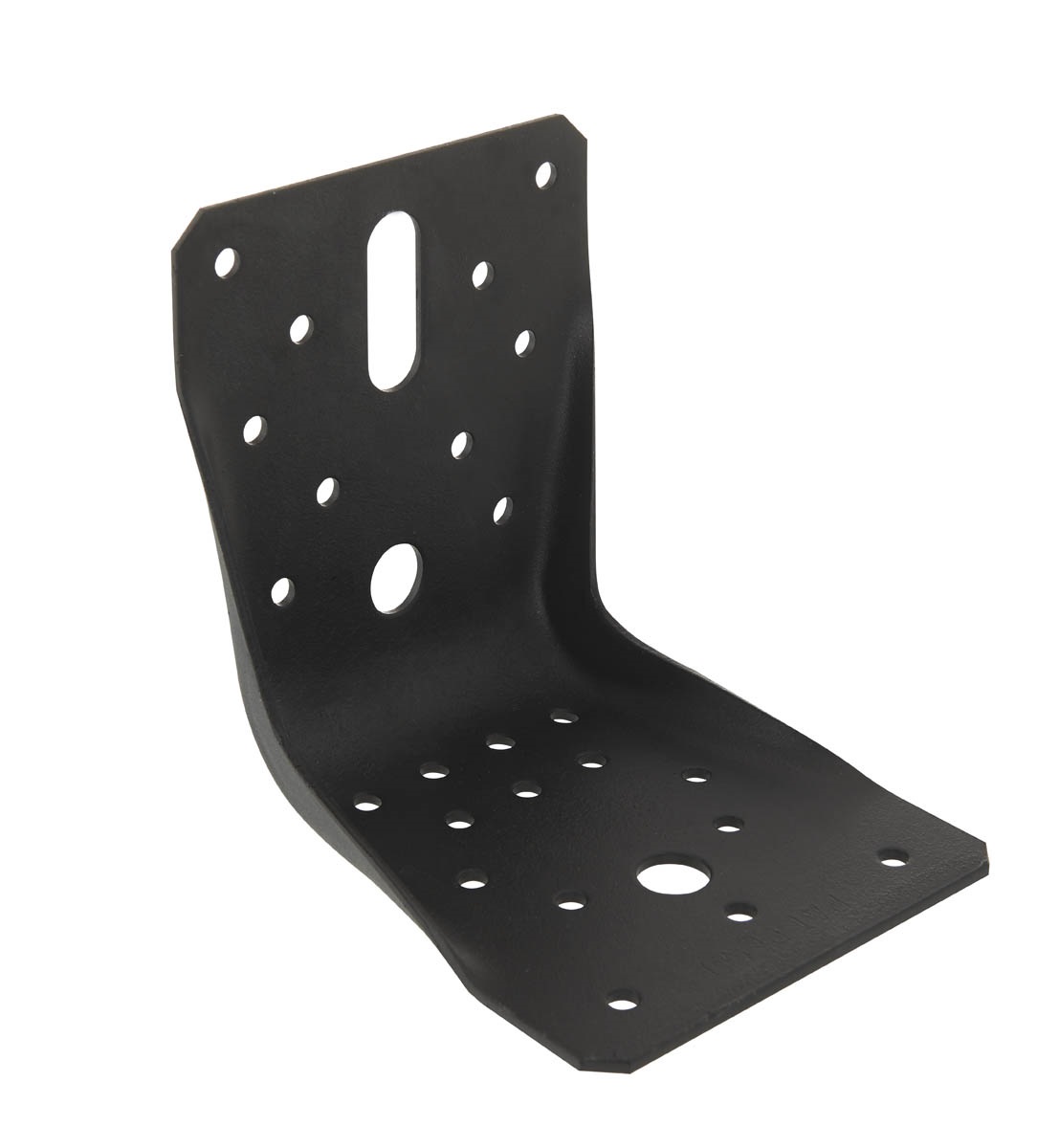 ABR100PB är ett svartlackerat vinkelbeslag med en mycket flexibel användning. Detta vinkelbeslag lämpar sig bra till både trä-trä och trä-betong applikationer. De kraftiga kantförstärkningarna ökar beslagets styrka och ger även möjlighet till betonginfästning med optimalt avstånd till beslagets kant.