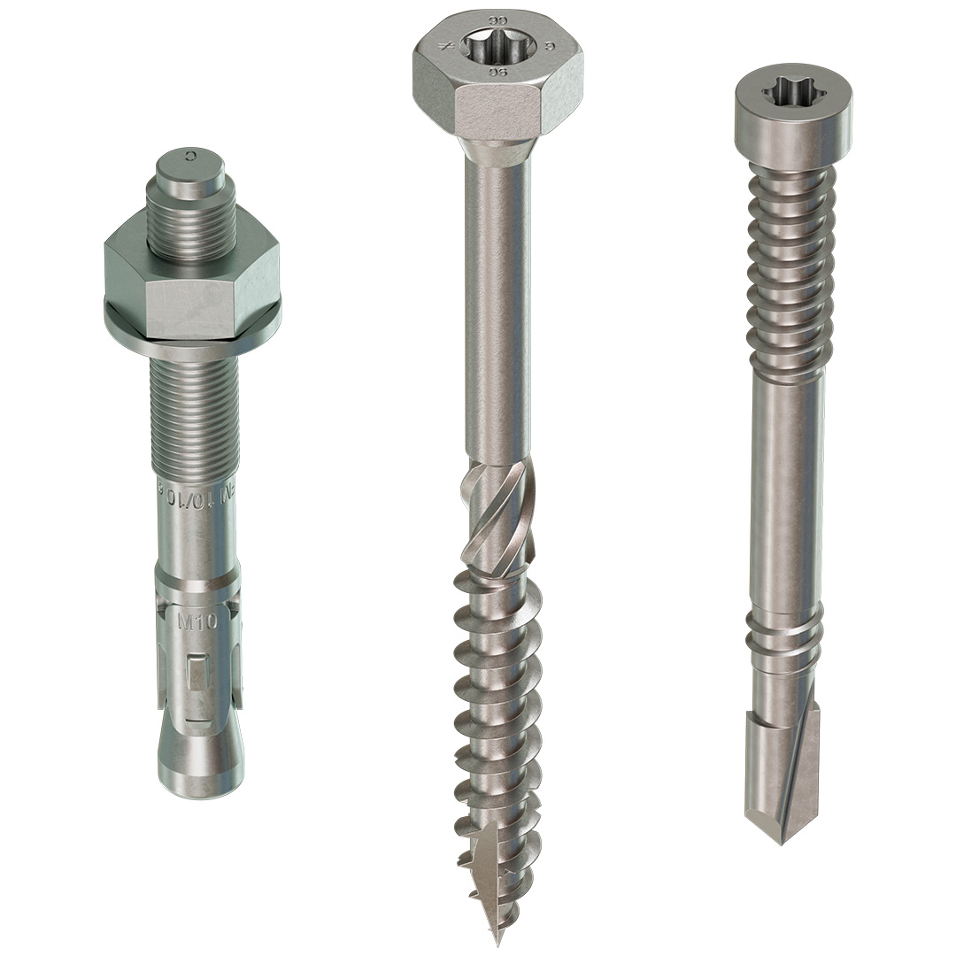 - Trä: CNA4,0xl ankarspik, CSA5,0xl ankarskruv, SSH Ø8