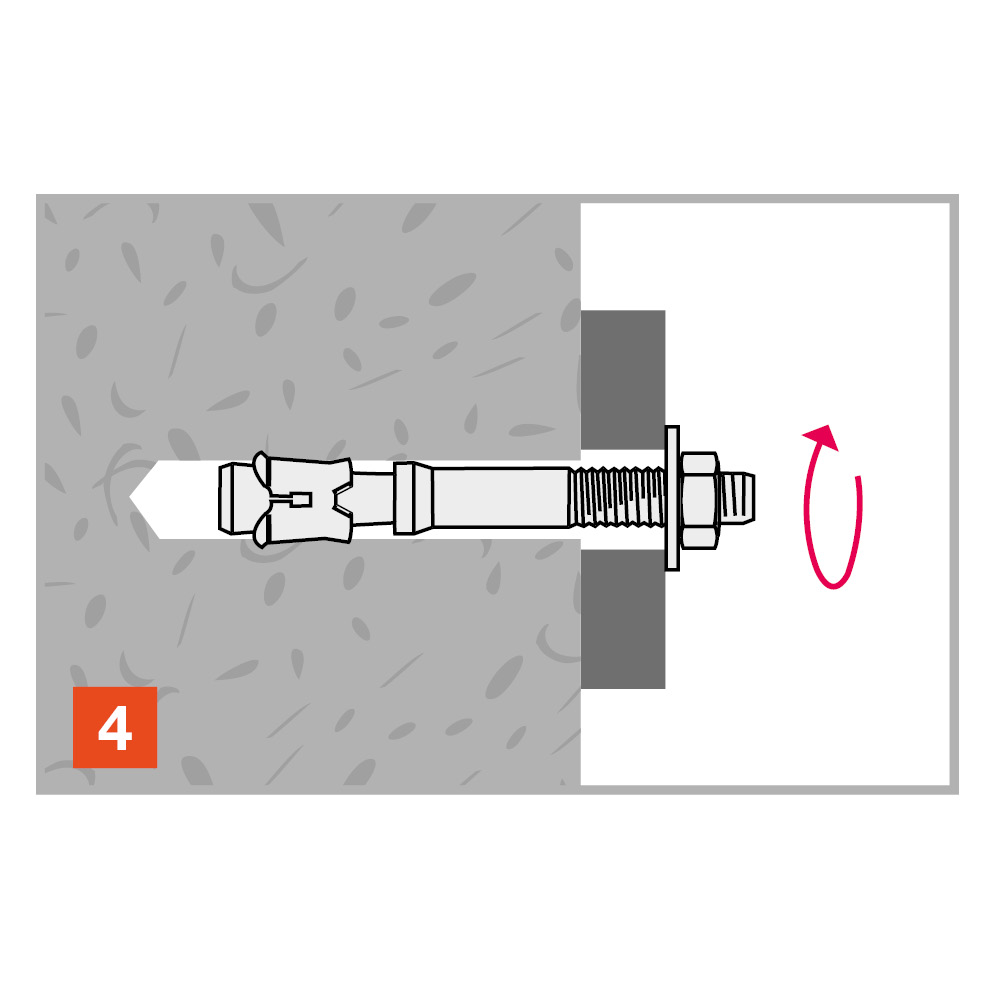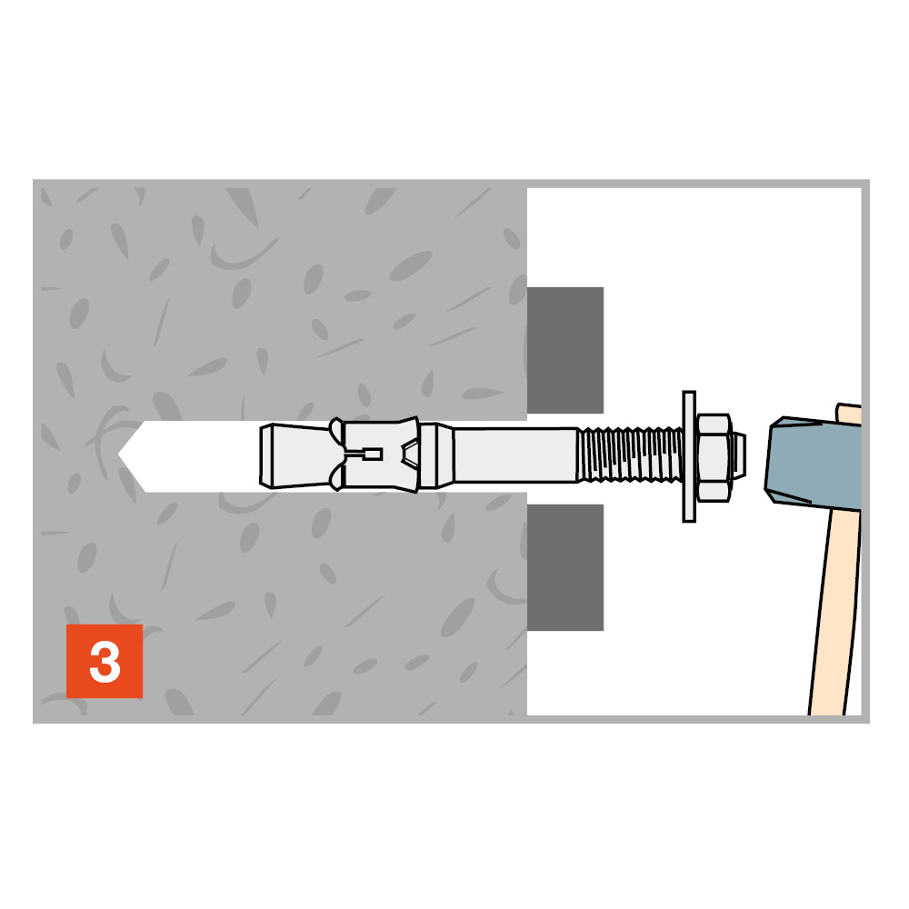 Kraftig expanderskruv för medelhöga laster i storlekarna M6-M20. Option 7 klassad för montage i osprucken betong C20/25 - C50/60. 3DG ytbehandling för utomhusbruk.