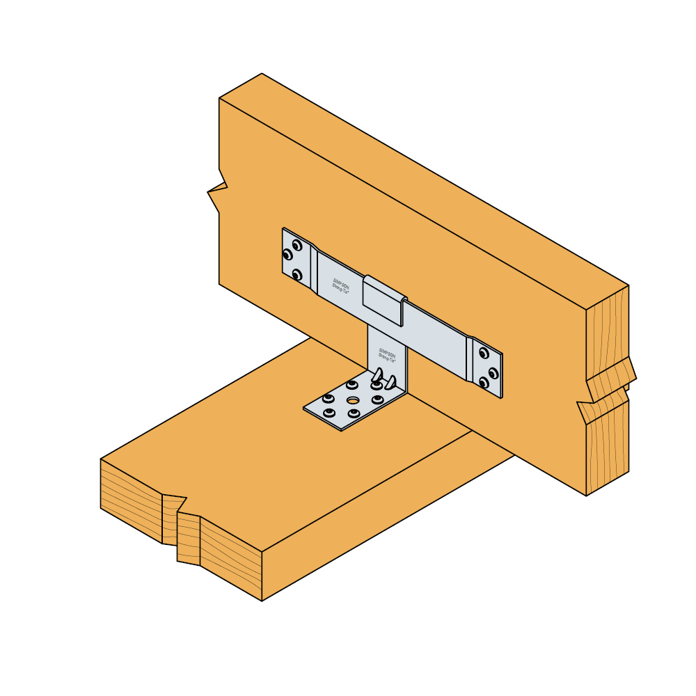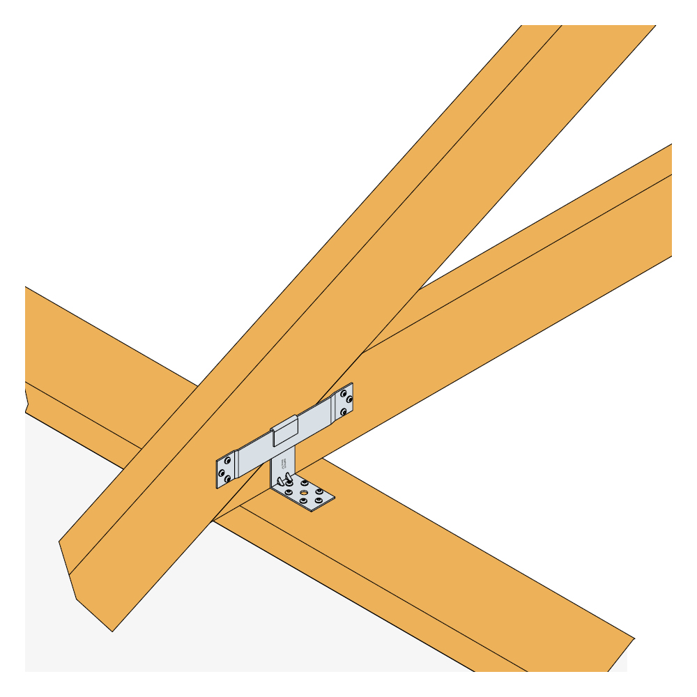 RS1 glidbeslag används vid sammanfogning av träkonstruktioner där det ska vara möjligt för konstruktionsdelarna att arbeta, exempelvis vid montering mellan vägg och takstol.