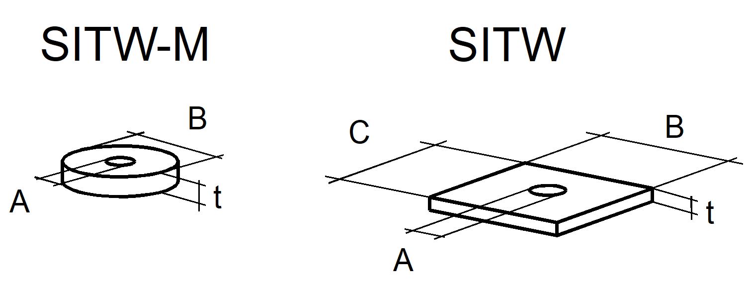 • SITW cirkulära brickor: erbjuds i två diametrar. Används tillsammans med strukturell träskruv.