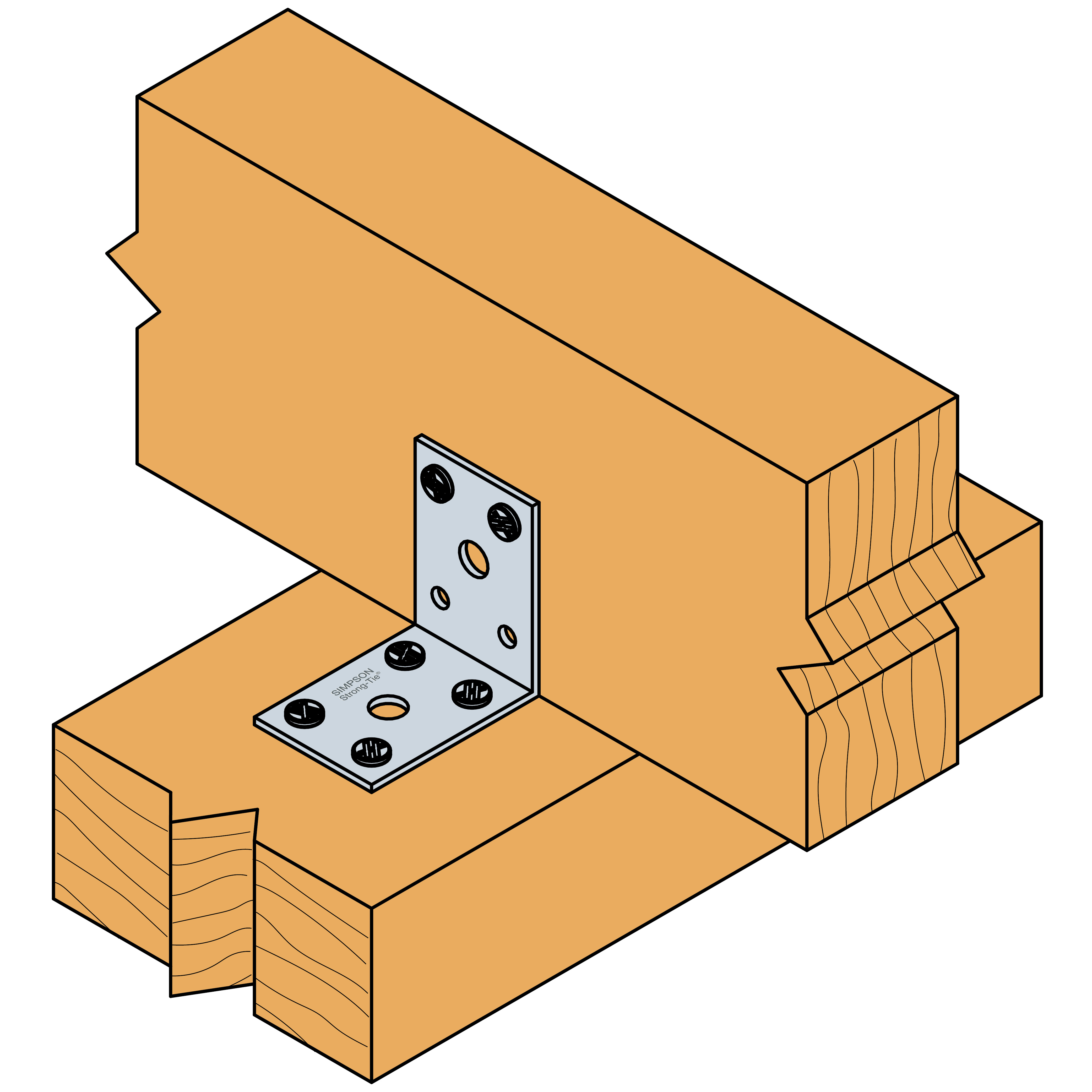 AC vinkelbeslag används vid mindre virkesdimensioner till trä-trä fogar eller till fogar mellan trä och betong. Det är alltid rekommenderat att använda två vinkelbeslag per fog.
