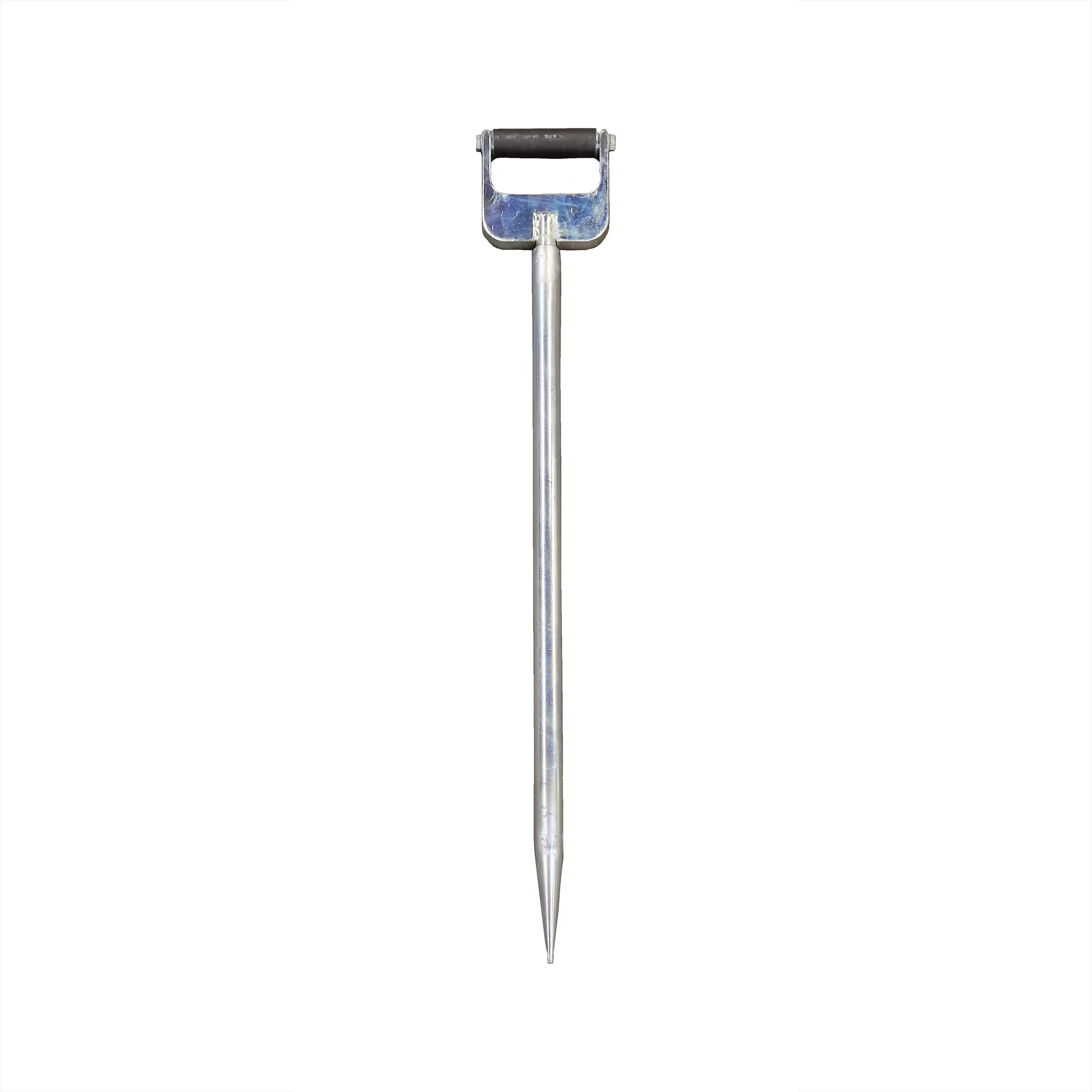 Spjutet används som riktmärke för markskruven. Markera platsen och "förborra" hålet.