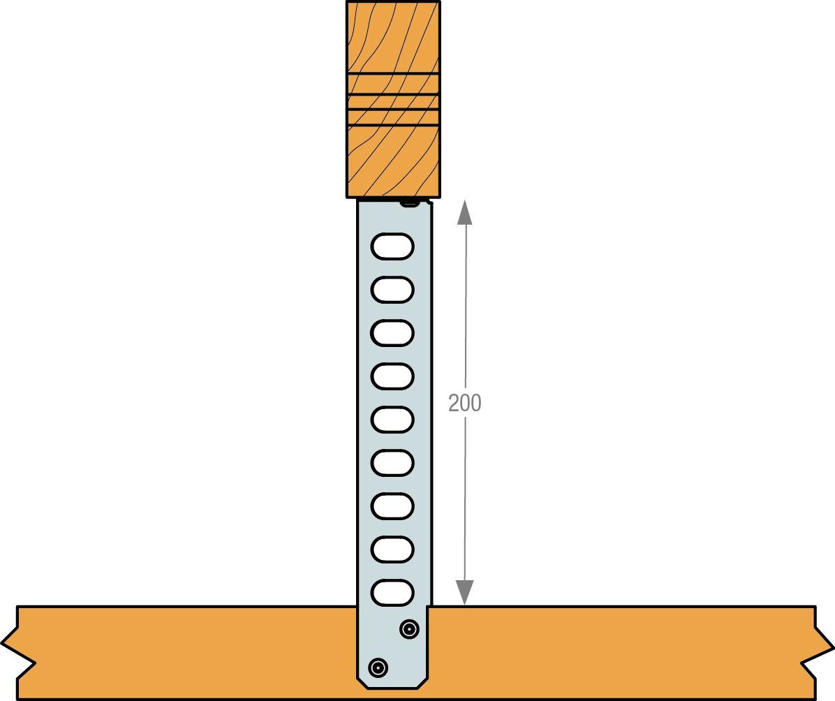 Beslaget används för nedsänkning av tak vid montage av tekniska installationer. Produkten är utvecklat utifrån Eurokod 5 och uppfyller kraven för kantavstånd.