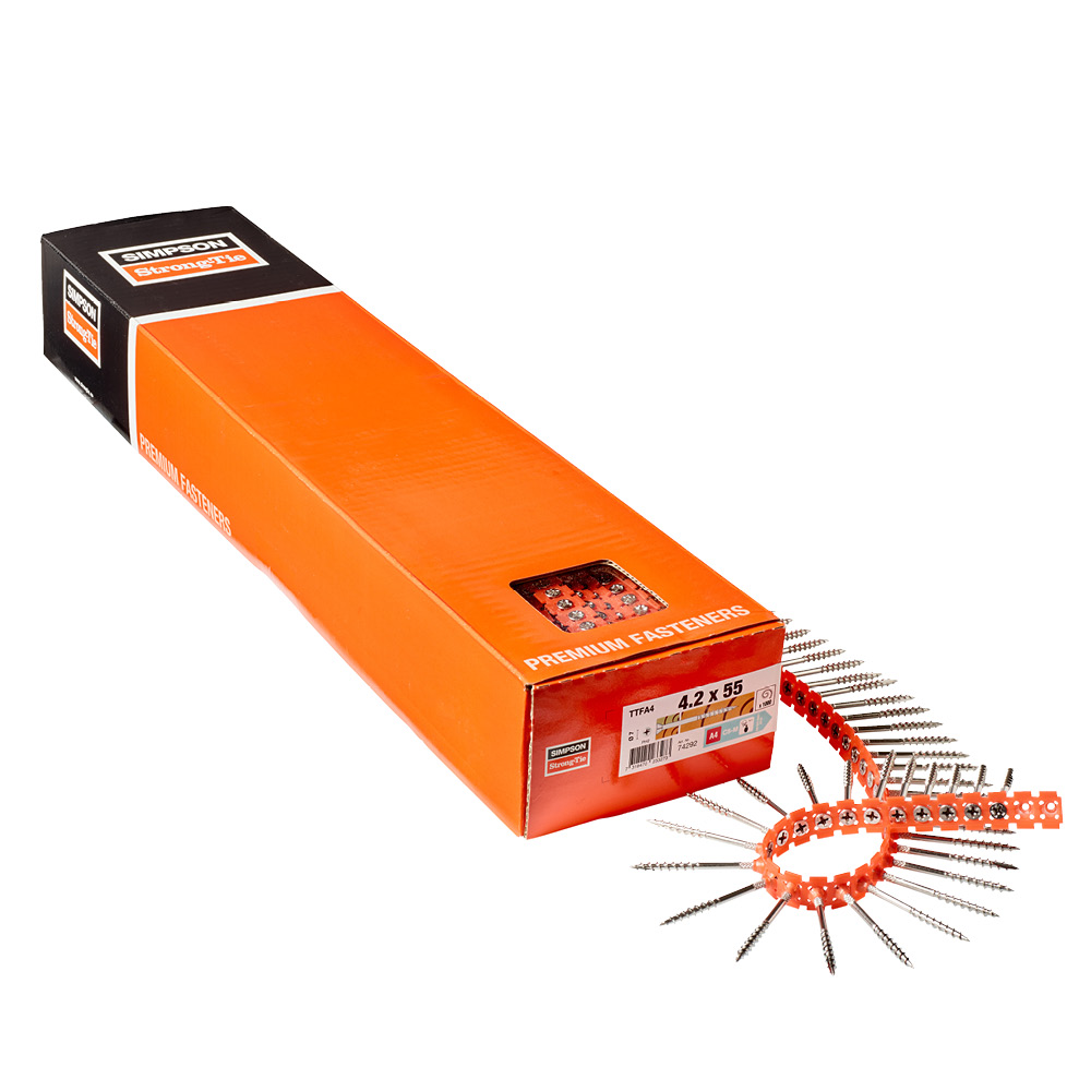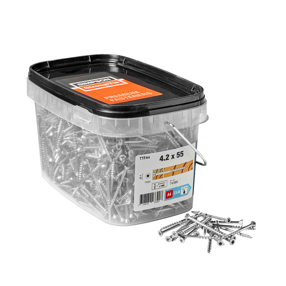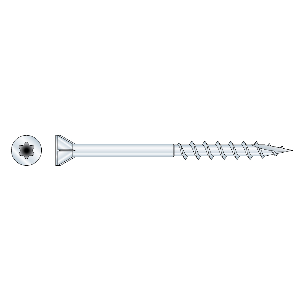 Rostfri syrafast A4 trallskruv är lämplig för montering av trallvirke utomhus. Skruven har ett TX-spår som säkerställer ett starkt grepp och en skärnade spets som säkerställer ett