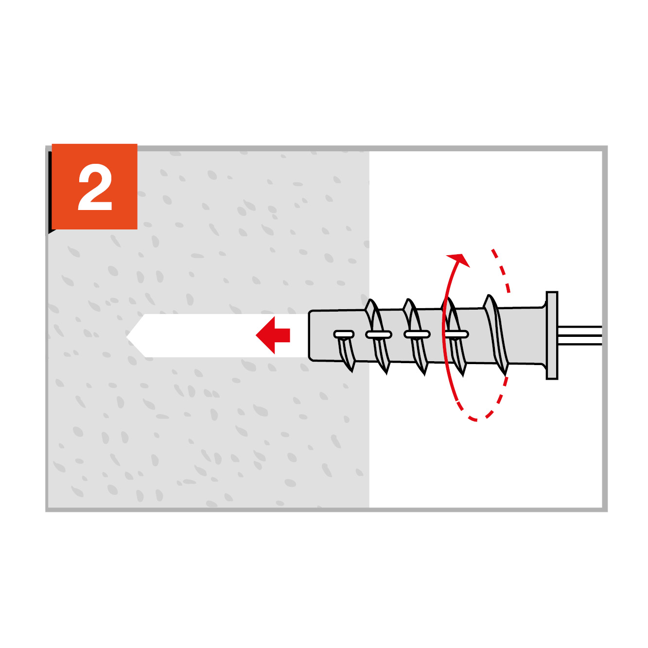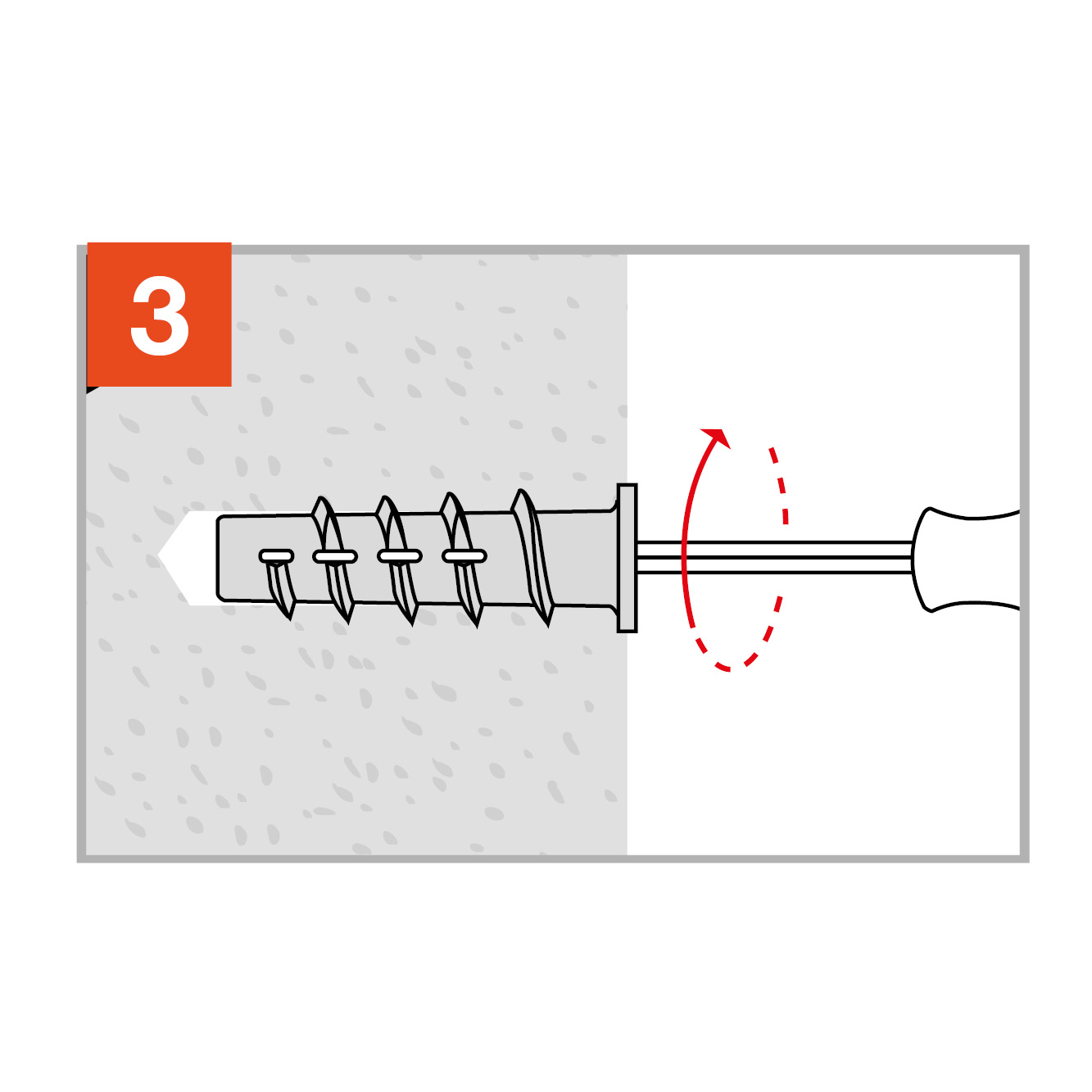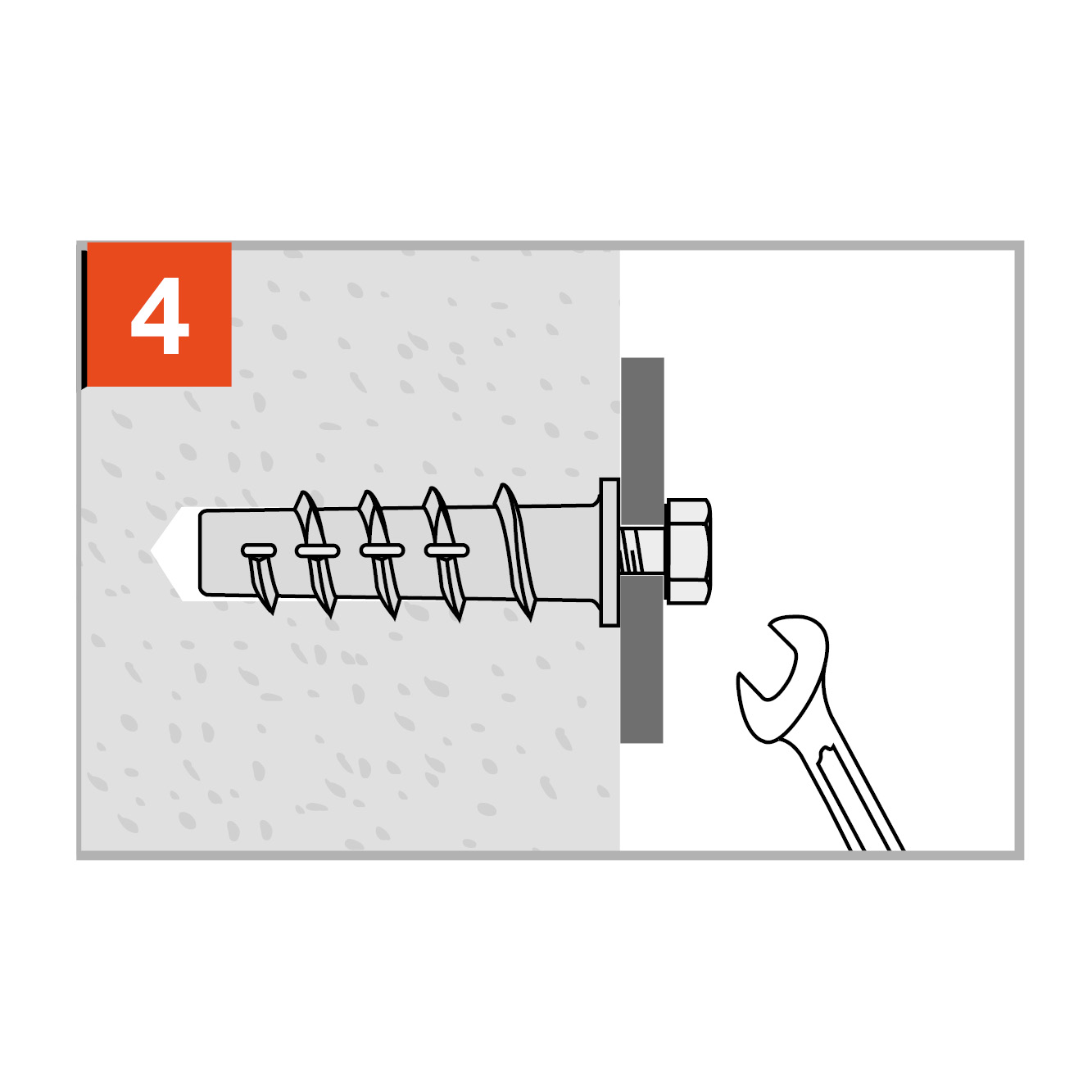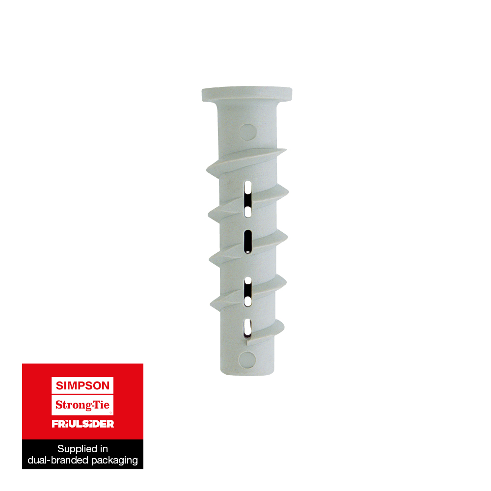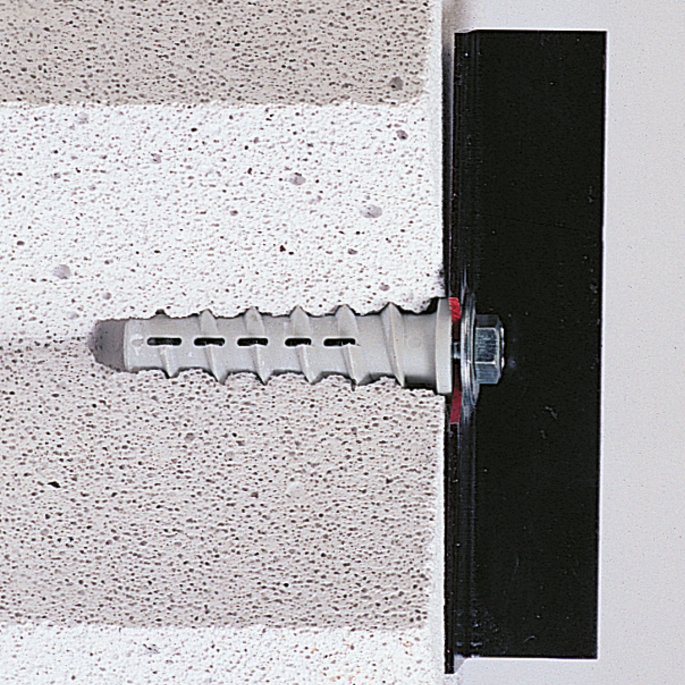 TML-plugg Ø10 - Ø12 är speciellt utformad för användning i lättbetong. Pluggen skruvas in i det förborrade hålet i lättbetongen där den grova gängan skär in i materialet. Fäst sedan föremålet som ska hållas fast med en träskruv eller metrisk bult.