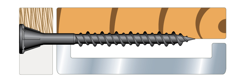Avsmalnande spets för enkel indrivning in i virket utan förborrning.