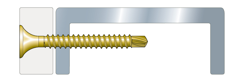 DWFSD är en självborrande skruv med stålgänga, utformad för att fästa gipsskivor på stål med tjocklekar 0,9 - 2,0 mm.