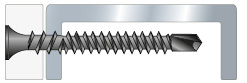 Skruv för våtrumsgips med borrspets är avsedd för montage av hårda gipsskivor mot förstärkningsregel (0,9-2,0 mm).