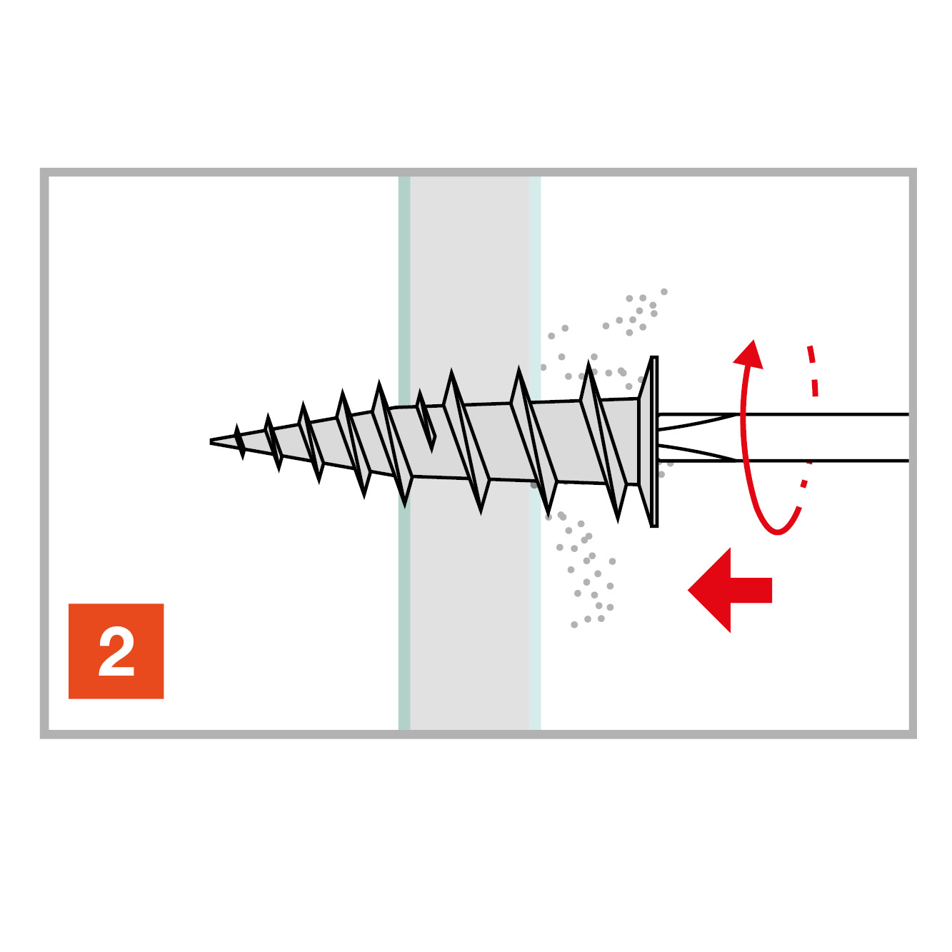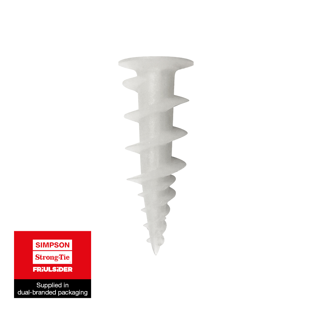 TAN nylonplugg är avsedd för infästning i gipsskivor. Skruven kan skruvas direkt in i ett eller två lager gips utan förborrning. Föremålet som ska fästas monteras med Ø3,0 - Ø4,5 mm trä-, gips- eller stålskruv.