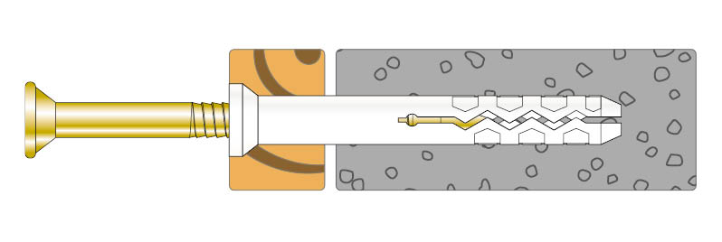 Spikpluggen monteras snabbt och enkelt i betong eller massivt tegel. Spikplugg med försänkt krage används vid montering av reglar, socklar och köksinredningar.