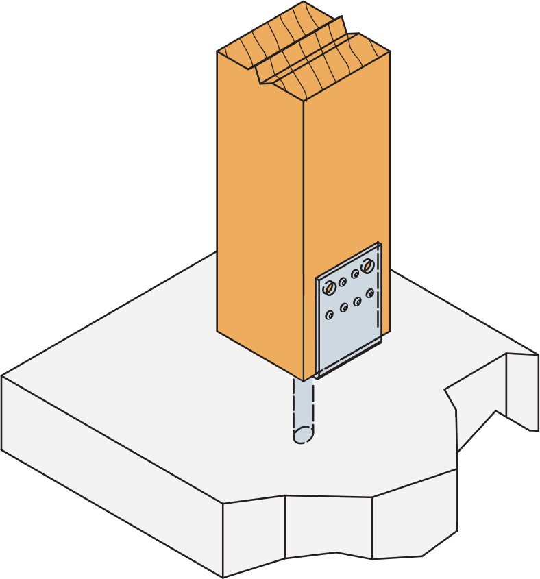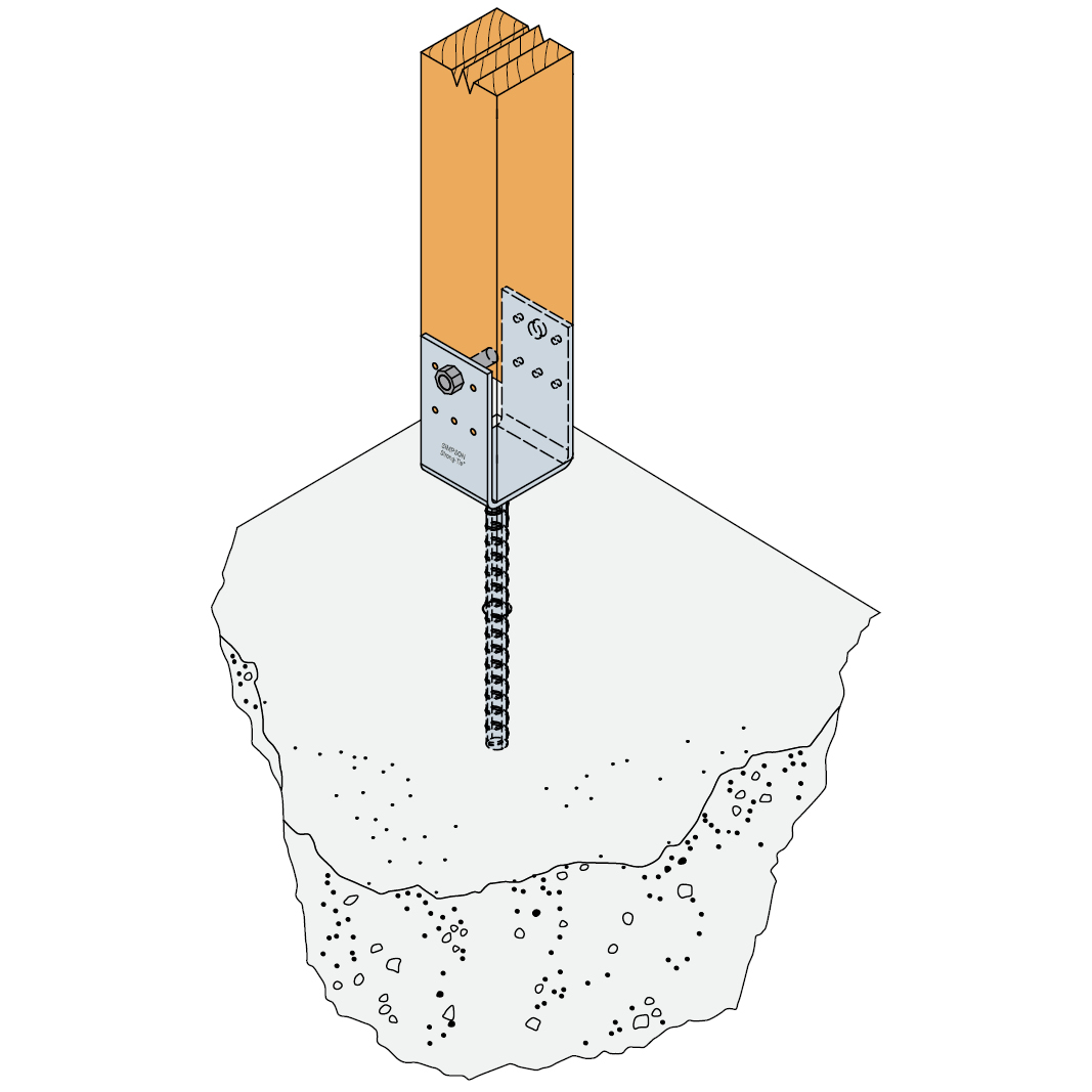 Stolpskorna är försedda med Ø5 mm hål för ankarspik/ankarskruv och Ø13,5 mm hål för grövre skruvar som t.ex 12 mm SSH skruv.