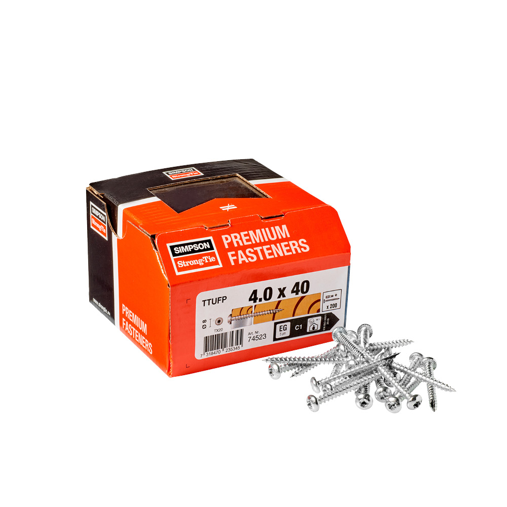 Träskruv Kullrig med Elförzinkad ytbehandling har TX-fäste och en skärande spets som lätt driver in skruven i virket och motverkar sprickbildning. Alla skruvar har tandad gänga som reducerar indrivningsmomentet ytterligare. Den rillade ytan under huvudet hjälper skruven att greppa materialet och motverkar risken att överdra skruven.