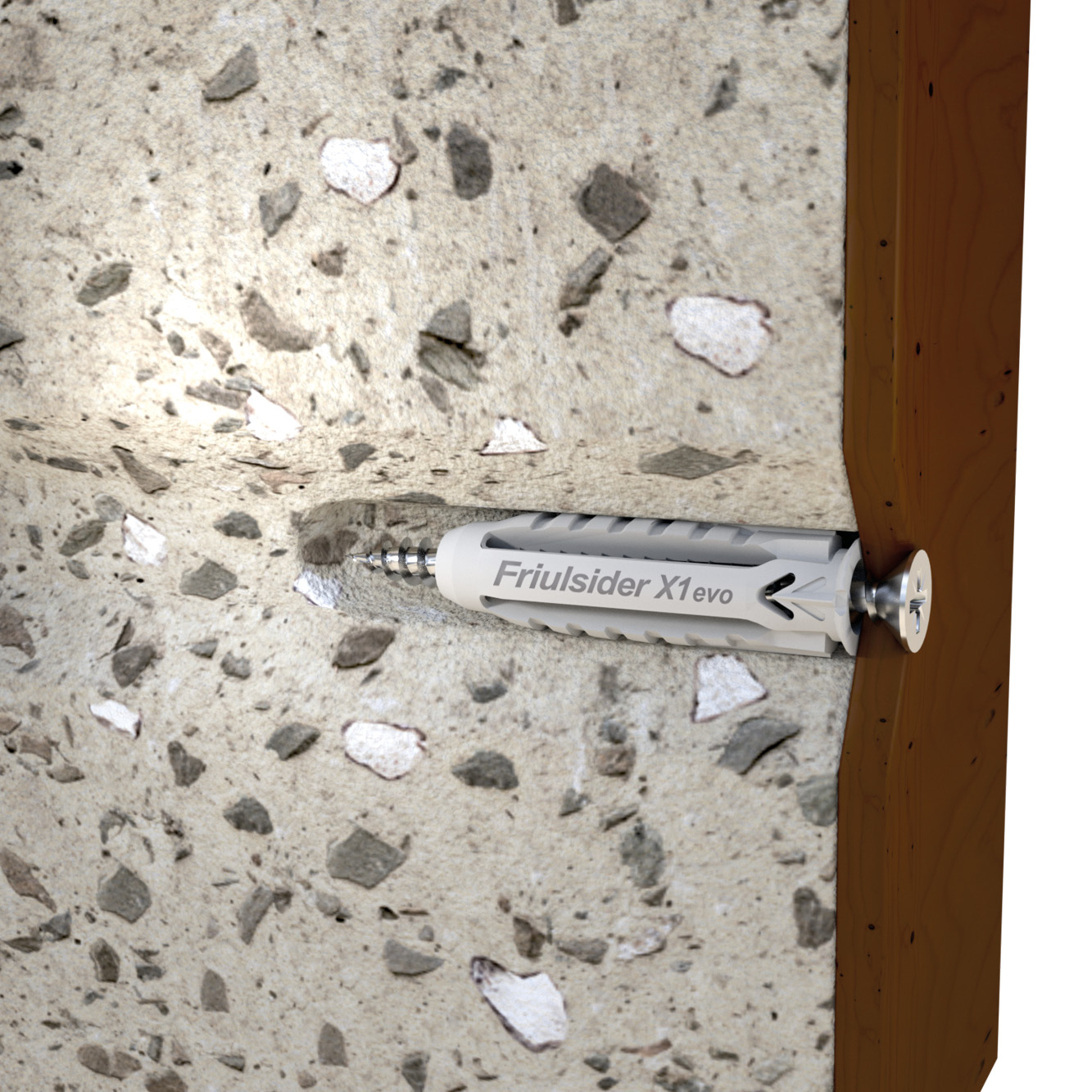 Pluggen som revolutionerat begreppet universalplugg. 4-sektorsgeometrin består av maxi antirotationsvingar, mikrovingar samt en tunn försänkt krage för att nämna några av de unika egenskaperna och styrkorna. Tack vare sin speciella design fungerar X1 evo på de flesta material som t.ex massiva material, ihåliga material och skivmaterial. Pluggen är kompatibel med spånskiveskruv, träskruv och metriska skruvar.