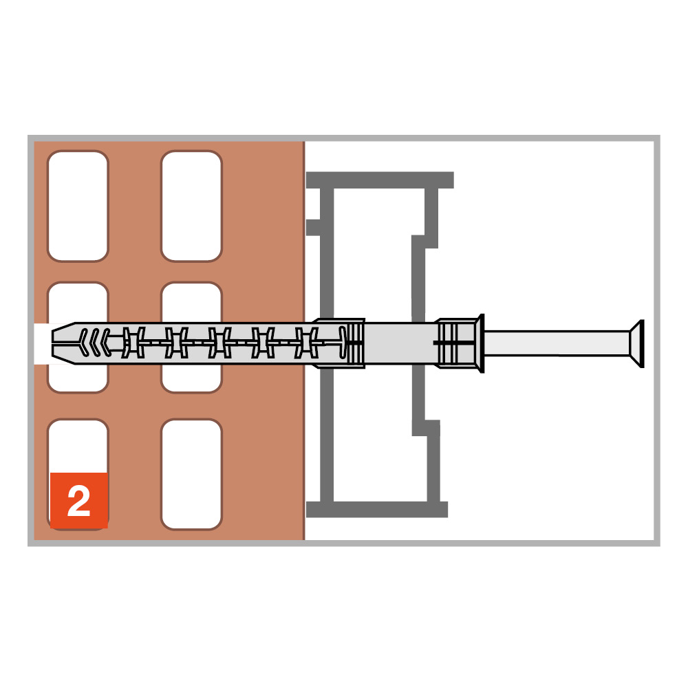 Universalplugg FM-X5 är tillgängliga i Ø8,0 mm alternativt Ø10,0 mm och kombineras med försänkt eller sexkantshuvud. Pluggen är godkänd för montage mot flertalet basmaterial som exempelvis betong och murverk.