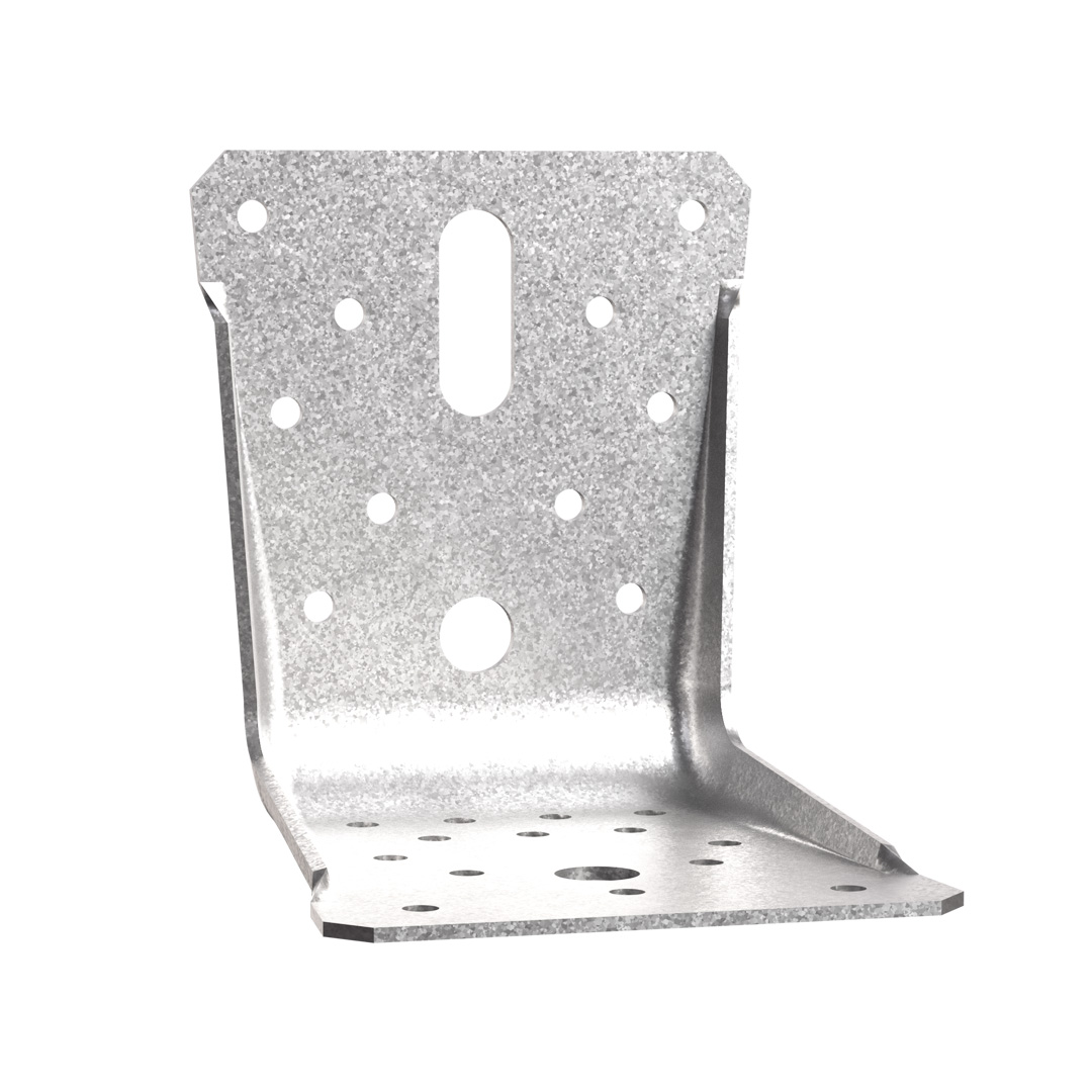 ABR9015 och ABR100 vinkelbeslag används för trä-trä och trä-betong applikationer. De kraftiga kantförstärkningarna ökar beslagets styrka och ger även möjlighet till betonginfästning med optimalt avstånd till beslagets bocklinje.