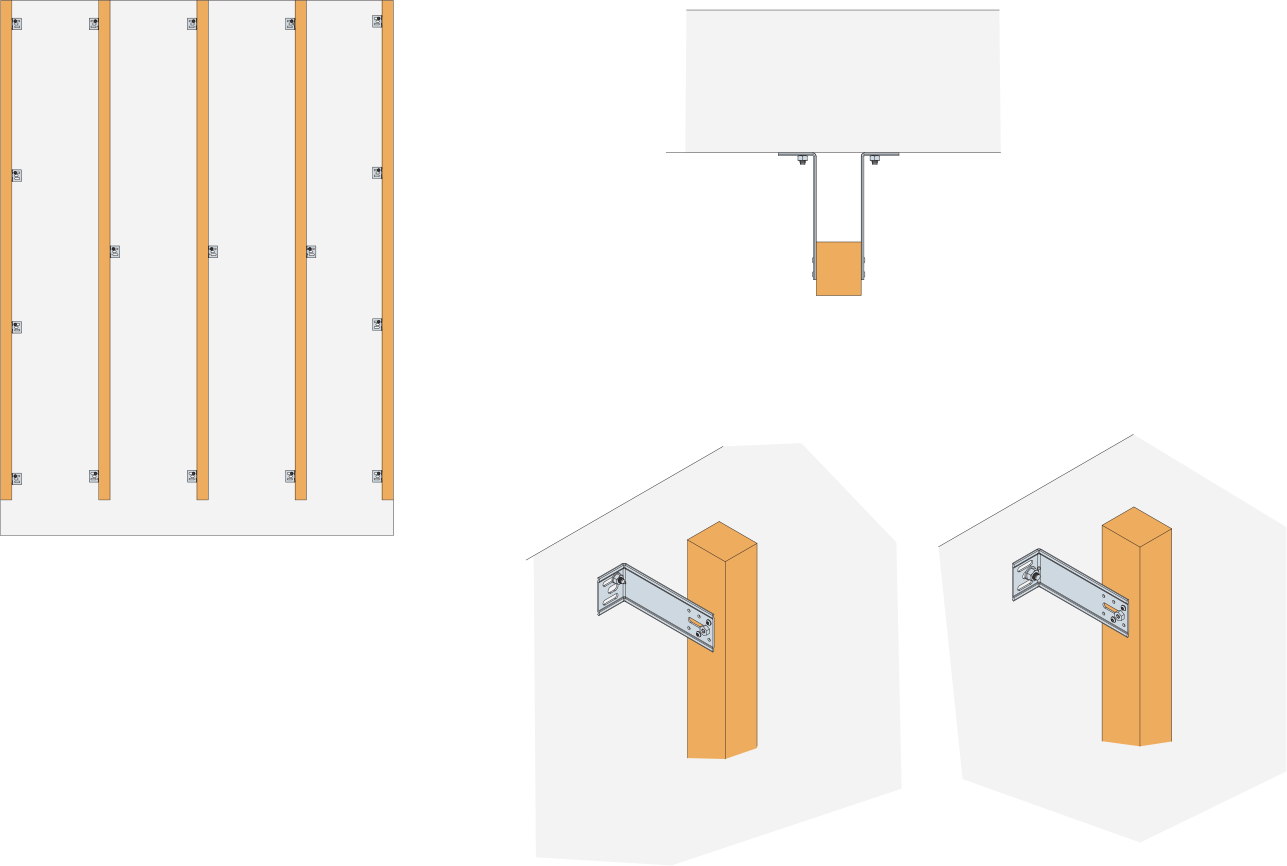 - Connect vertical timber batten of steel profile directly to the supporting structure.